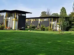 Tegnestuen Vandkunsten has designed a number of housing estates. Trudeslund (1980-81) is a co-housing community.[4] The concept was later developed further with Jystrup Savværk in Jystrup. The Langkjærgård development is from 1985[5] and Blikfanget was built in 1988-1989.[6] Søhuse (1995), a development of terraced housing, is located on a gently sloping site on the banks of Birkerød Lake.[7]
