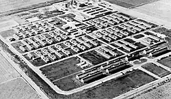For a short time when it opened, Birmingham General Hospital was called Van Nuys General Hospital, but was renamed Birmingham General Hospital after Brigadier General Henry Patrick Birmingham (1854–1932), of the U.S. Army Medical Corps. The War Department approved the construction of the hospital on August 24, 1943. The land was farm land of the Encino Rancho and the Petit Ranch. The 80 single-story buildings were made of brick and some stucco. The hospital also had a chapel, rehabilitation pool, gymnasium, fire station, bomb shelter, kitchen, movie theater, racquetball/handball court, Pacific Electric street car station (possibly Van Nuys station) and a Prisoners of War (POW) wing. An Italian Service Unit with 40 Italian POWs from the North African campaign volunteered at the hospital. The Army hospital worked on general medicine of returning Veterans. There was special care for Vets with central nervous system syphilis, rheumatic fever, quadriplegic and paraplegic and shell shock. Due to the war efforts Penicillin was being mass-produced by 1944. The Hospital made use of this new wonder drug in helping Vets. The hospital was also one of the first to use an antibiotic ointment on patients. Maj. Joseph Weinberg used the new antibiotic ointment to help patients with infected compound fractures. The hospital also had a wing for women vets, women that served in WAVES (Women Accepted for Volunteer Emergency Service), Women's Army Corps and Army nurses. For returning Vets, 800 beds were used for debarkation medical work. The first commander of the hospital was Col. Alvin C. Miller, from the US Army's Pearl Harbor Army hospital. Chief of the medical rehabilitation was Jack W. Gregory.[1][2][3][4][5][6][7][8] Birmingham General Hospital also had a unit to modify cars for those that lost the use of their legs, to drive with hands only. Actress Susan Peters also received a modified Birmingham car after a hunting accident.[9][10][11][12][13]