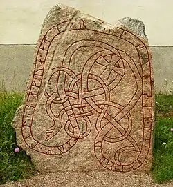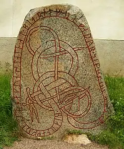 The Björklinge runestones are five Viking Age memorial runestones designated in the Rundata catalog as U 1045, U 1046, U 1047, U 1048, and U 1050 that are located at the church in Björklinge, Uppsala County, Sweden, which is in the historic province of Uppland. In addition, there is a small fragment of a runestone with a partial runic text i * lit * rita * meaning "had erected" that has been given the catalog number U 1049.[1]