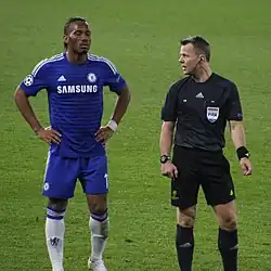 Kuipers was selected to officiate in the 2014 UEFA Champions League Final between Real Madrid and Atlético Madrid at the Estádio do Sport Lisboa e Benfica[20] in Lisbon on 24 May 2014.[21] He became the fourth Dutch referee to take charge of a prestigious European Cup Final after Leo Horn (1957 and 1962), Charles Corver (1978) and Dick Jol (2001).[22][23]