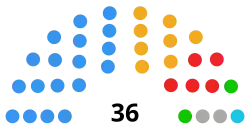 Since the last boundary changes in 2023 the council has comprised 36 councillors representing 17 wards, with each ward electing one, two or three councillors. Elections are held every four years.[21]