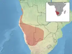 The black-tailed tree rat is endemic to southwestern Africa. Its range includes southwestern Angola, Namibia, Botswana and northwestern South Africa. It inhabits dry savanna, and thorny scrubland with dense patches of woodland or scattered trees such as Vachellia erioloba, Vachellia luederitzii, Vachellia karroo, Euclea pseudebenus, Terminalia sericea, and Boscia albitrunca.[4]