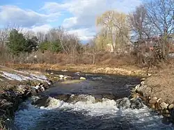 Black Brook begins at the outlet of Kimball Pond in Dunbarton, New Hampshire. The brook travels southeast into Goffstown and then Manchester, joining the Merrimack just upstream from Amoskeag Falls.