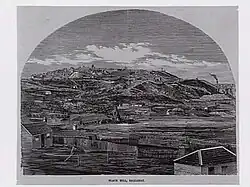 According to Federation University's Ballarat and District Industrial Heritage Project, Black Hill was known as 'Bowdun' by the local Wadawurrung people, until it was renamed by the surveyor William Urquart in 1851.[3] The subtitle 'Black Hill' was given by Urquart in reference to the dense canopy of trees.[4][5][6] However, extensive mining over the 1850s saw the hill stripped of trees and significantly reduced in height, as well as the creation of a valley.[7] It became a focal point for quartz causing operations at this time, with the erection of a crushing battery at the base of the hill, probably the first in Australia.[3] As late as 1856 this is evidence that Indigenous peoples lived amongst miners at Black Hill, with some oral history accounts of child minding during the Eureka Rebellion.[8]