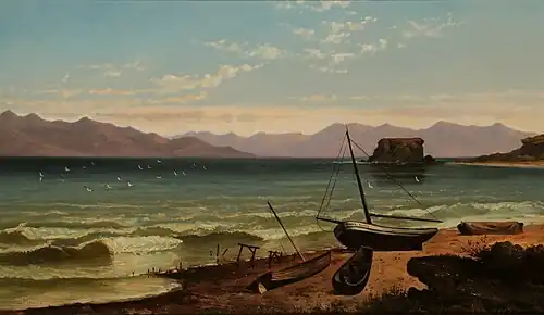 "A fifteen minute [horse] ride, and Black Rock rose grim and ugly, like the foundation of some ruined tower...we had expected a grim and desolate landscape; a sullen waste of brine, stagnating along low ready shores, black as Acheron, gloomy as the sepulcher of Sodom. Never had Nature a greater surprise for us. The view is one of the most charming which could be imagined." (Ludlow 1870:385)[2]