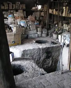 In the 1950s, Doña Rosa Real discovered that she could change the color and shine of the pieces by polishing the clay pieces and firing them at a slightly lower temperature. Just before the formed clay piece is completely dry, it is polished with a quartz stone to compress the surface. After firing, the piece emerges a shiny black instead of a dull gray.[3][5] This innovation makes the pieces more breakable, but it has made the pottery far more popular with Mexican folk art collectors, including Nelson Rockefeller, who promoted it in the United States.[7] This relatively recent popularity stems from the look, rather than durability, so many pieces are produced now for decorative purposes rather than utility.[3][5] Doña Rosa died in 1980, but the tradition of making the pottery is carried on by her daughter and grandchildren who stage demonstrations for tourists in their local potters' workshop.[5][8] The workshop is still in the family home, where shelves of shiny black pieces for sale line the inner courtyard.[9]