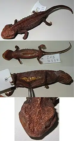 The black knobby newt (Tylototriton asperrimus) is a species of salamanders in the family Salamandridae found in China and Vietnam.[1] Its natural habitats are subtropical or tropical moist lowland forests, subtropical or tropical moist montane forests, freshwater marshes, and intermittent freshwater marshes. It is threatened by habitat loss and overharvesting.[1]
