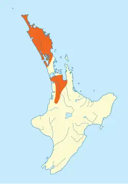 | Approximate known distribution of the black mudfish on a map of the North Island | |