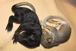 Juvenile grey squirrels – one black, one with normal colouration – from two different litters.