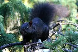 Black morphs may also occur with Columbian ground squirrels, Eurasian red squirrels, Richardson's ground squirrels, and western gray squirrels, although it is far more unusual for the latter to display color polymorphism.[4][5][6][7] No association between melanism and variations in their MC1R was found in Eurasian red squirrels; with researchers suggesting that the different color variations (including black morphs) in Eurasian red squirrels, and fox squirrels being a polygenic result.[4] Melanism with Richardson's ground squirrels is due to recessive genes.[5]