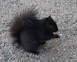 The black coat has been suggested as a selective advantage for squirrels inhabiting the northern ranges of the species, as it helps them inhabit colder regions.[15] The apparent thermal advantage has contributed to the expansion of the eastern gray squirrel's range northward following the end of the last glacial period.[1] Black morph eastern gray squirrels have been reported as far north as Sudbury, Ontario, past the traditional range of the eastern gray squirrels.[16]