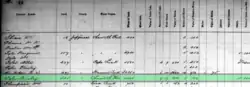 Presley Tyler's 1865 tax records showing he enslaved 17 individuals. Only 7 of them were above the age of 16.[7]