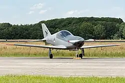The aircraft is made from pre-preg carbon fibre, with an aluminium and steel structural frame. Its 7.94 m (26.0 ft) span wing has an area of 9.96 m2 (107.2 sq ft) and double slotted flaps. It is stressed to +4/-2g. The standard engine available is the 100 hp (75 kW) Rotax 912ULS four-stroke powerplant, driving a two bladed constant speed propeller, which gives it a maximum level speed of 300 km/h (186 mph) and a cruise speed of 275 km/h (171 mph).[1][2] The 115 hp (86 kW) Rotax 914 is also available as an option, as is the 141 hp (105 kW) Rotax 915 iS.[3][4][5][6][7]