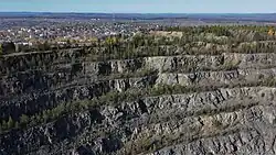 A mined-out open-pit on the site of the mountain. 2020