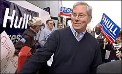 Hull garnered nationwide attention for inviting scores of prescription-drug dependent senior citizens aboard his campaign buses to travel across the US/ Canada border into Windsor, Ontario where they could purchase their medications at dramatically lower prices. The trips served to focus media attention on the rising costs of American healthcare, and to frame the debate as the campaign moved forward.