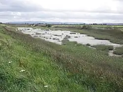 The three freshwater and brackish pools were dug between 1983 and 1987 to attract wildlife. It forms part of the Severn Estuary Site of Special Scientific Interest, Special Protection Area and Ramsar site. In spring 2001 part of the sea wall protecting the outer pool collapsed, creating a tidal lagoon. To control water levels, sluice gates have been fitted into the two shallow pools. Reeds have also been planted around the largest pool.
