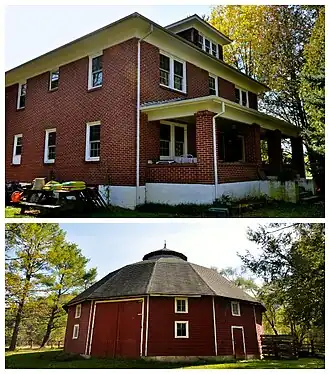 Blankenship Farm is a historic home and barn located near Ellett, Montgomery County, Virginia. The farmhouse was built around 1929, and is a three-bay, two-story, brick, hipped roofed, American Foursquare-style dwelling. In addition to the farmhouse, there is a contributing fourteen-sided frame barn on a poured concrete foundation. It has a concrete floor and is sided with German or novelty weatherboard.[3]