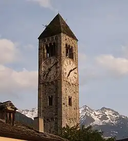 The political power in the upper Blenio valley was in the hands of a branch of the De Torre family. They owned land in Olivone and possessed the patronage rights in the parish church until the oath of Torre in 1182 ended their supremacy. In 1213 the villages of Olivone and Aquila revolted and united against the Da Locarno family, who had been given power over the valley by canons of Milan. They were able to drive out the Da Locarno's and return to the previous situation, where they were ruled by a governor out of Lombardy. The assemblea di uomini liberi (The Assembly of the Free), which is first mentioned in 1136, provided for the management of common forests, alpine pastures and helped maintain the Lukmanier and Greina passes. By the end of the 14th century the assemblea di uomini liberi took advantage of Olivone's lease on the Santa Maria alpine pasture, which belonged to the abbey of Disentis. The village customary law was written down in the statutes of 1237 and 1474.[6]