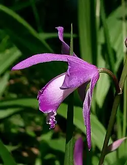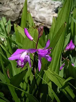 Bletilla, common name urn orchid, is a temperate, terrestrial genus of orchids containing five currently recognized species distributed through China, Japan, Taiwan, south to Vietnam, Thailand and Myanmar.[1][2] The name is actually a diminutive of Bletia because of the resemblance between the two genera even though Bletia is a New World genus. The genera Jimensia Raf. and Polytoma Lour. ex Gomes are generally included into Bletilla. This genus is abbreviated Ble in trade journals.
