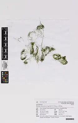 - Chapman, V.J. (1956). "The marine algae of New Zealand. Part I. Myxophyceae and Chlorophyceae". Linn. Soc. Bot. 55 (360): 333–501.