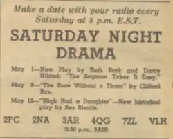 - ^ "A.B.C. Play-Lovers' Guide", ABC Weekly, 10 (19), Sydney: Australian Broadcasting Commission, 8 May 1848, nla.obj-1549912543, retrieved 18 October 2023 – via Trove