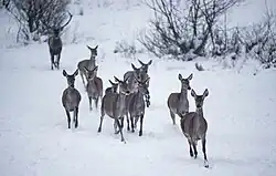 The most prevalent species cultivated in the Blinaja hunting area include roe deer, wild boar, fallow deer and red deer among others. In addition to these, the Blinaja hosts 82 carnivorous species found in Protected Areas of Nature, such as the wolf, fox, badger and the European wildcat, as well as birds like the imperial eagle, stone partridge and goshawk. Throughout the year and various seasons, the area also attracts numerous migratory birds that make intermittent stopovers.[3]