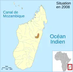 It is endemic to Madagascar. Its natural habitats are subtropical or tropical moist lowland forests, subtropical or tropical swamps, subtropical or tropical moist montane forests, swamps, and heavily degraded former forest. It is threatened by habitat loss.