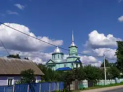 Historically Blon (Błoń) belonged to Igumensky Uyezd in the Russian Empire, which was earlier part of Minsk Powiat in the Grand Duchy of Lithuania. It is associated with Jesuit priest and poet Józef Baka, who established there a Jesuit monastery in about 1745 and a wooden church of John the Baptist around 1748. After his death, it was passed to the Jesuit order, and after the suppression of the Jesuits the properties were seized by a Poniński and later passed to Ossowskis of Dołęga coat of arms.[2] In 1863, they were sequestrated as a punishment for taking part in the January Uprising, and in 1868, they were sold to a civil official, Bończ-Osmołowski (Иосиф Александрович Бонч-Осмоловский), from which lands the properties of włościans (pl:włościanin, a land-owning peasant) were separated, leaving about 2,250 morgen of arable land.[3]