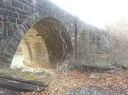 The Bloomington Viaduct is a viaduct that spans the Northern Branch of the Potomac River, connecting Bloomington, Maryland to Mineral County, West Virginia. The sandstone railroad bridge features three full center arches, each with a 56-foot (17 m) span and a 28-foot (8.5 m) rise. It is owned and operated by CSX Transportation on its Mountain Subdivision.