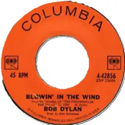 "Blowin' in the Wind" is a song written by Bob Dylan in 1962. It was released as a single and included on his album The Freewheelin' Bob Dylan in 1963. It has been described as a protest song and poses a series of rhetorical questions about peace, war, and freedom. The refrain "The answer, my friend, is blowin' in the wind" has been described as "impenetrably ambiguous: either the answer is so obvious it is right in your face, or the answer is as intangible as the wind".[2]