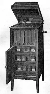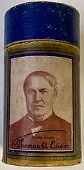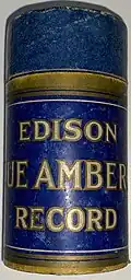 Blue Amberol Records was the trademark name for cylinder records manufactured by Thomas A. Edison, Inc. in the US from 1912 to 1929. They replaced the 4-minute black wax Amberol cylinders introduced in 1908, which had replaced the 2-minute wax cylinders that had been the standard format since the late 1880s. Blue Amberols can play for as long as 4 minutes and 45 seconds and have a surface layer of the "indestructible" plastic celluloid, which Edison tinted a trademark blue color. Edison brand phonographs designed to play Amberol cylinders were named Amberolas.