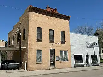 It is a two-story brick 25 by 40 feet (7.6 m × 12.2 m) commercial building. Its facade is faced with light-colored commercial brick; the sides are red brick, probably locally produced.[2]