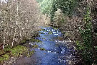 Blue River is a tributary of the McKenzie River in Linn and Lane counties in the U.S. state of Oregon. From its source at the confluence of Mann and Wolf creeks in the Cascade Range, it flows generally southwest to join the McKenzie near the community of Blue River.[3] Saddle Dam and Blue River Dam block the river about 2 miles (3 km) from its mouth to form Blue River Reservoir, a multipurpose impoundment built in 1968 by the United States Army Corps of Engineers.[6]