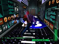 Nishigaki described the plot as Segawa's work, with Nishigaki mostly writing the character banter.[12] Eliot was not written as a conventional lead, being fun-loving and flirtatious in contrast to Dogs' more traditional stoic attitude. Janine was described as central to the character drama. Commenting on the character and world design, Segawa described Nephilim as a fantastical being compared to the grounded tone of the other characters.[8] The game featured both fully 3D graphics for its environments and character models, and a large number of CGI cutscenes.[15] Nishigaki speculated that Sega's support of the project was due to this 3D focus.[10] The lighting was split between three sources; Nephilim, weapon bursts, and pre-set lightmaps. While the Dreamcast was reported to refresh at 60 frames per second, Blue Stinger was kept to 30 due to the number of creatures shown on screen. They also did not use some of the graphical elements the console was capable of such as bump mapping.[9] During development the team did not know the full specifications of the Dreamcast, with Nishigaki saying they used half the console's graphical capacity.[10]