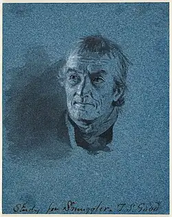 Until the 18th century, there was no paper production specifically or exclusively for artistic works. However, artists were already drawing on blue paper in the 15th century.[6] Towards the end of the 15th century, blue paper was used as a support for letterpress printing and for printmaking.[7] The blue color provided a unique starting point for modeling light and shadow compared to the white paper. This is because the artist usually began with a dark drawing instrument, such as a pen or brush dipped in ink, charcoal, or chalk. These dark lines or traces are tonally closer to the colored paper than the lighter white paper. This allows white as a point of contrast, with modeling the highlights with lead or opaque white as an additional step. This step is not trivial, providing a new opportunity to differentiate the modeling. White paper was sometimes colored with an opaque ground layer to achieve this differentiation.[8] These drawn studies of light and shadow provided preparation for the more nuanced execution of such modeling in colored painting. However, such drawings on colored paper with their more elaborate modeling (compared, for example, too many chalk or pen and ink drawings on white paper) had a special aesthetic effect. Collectors prized them early on.