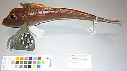 - ^ Christopher Scharpf & Kenneth J. Lazara, eds. (10 June 2021). "Order Perciformes (Part 12): Suborder Triglioidei: Families Triglidae and Peristediidae". The ETYFish Project Fish Name Etymology Database. Christopher Scharpf and Kenneth J. Lazara. Retrieved 9 June 2022.