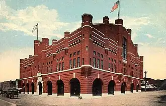 The Blues Armory is a large brick armory in downtown Richmond, Virginia. Housing the Richmond Light Infantry Blues, the castle-like structure originally served multiple purposes, with a food market on the ground floor and a drill hall for the National Guard of the United States on the top floor. The level between housed suites of offices for each individual National Guard company. The Richmond Spiders played their home basketball games at the site for a period of time.[3] In 1985, the ground floor was converted to retail and restaurant space, part of the 6th Street Marketplace.