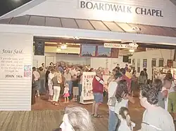 Boardwalk Chapel (formally, "The Boardwalk Chapel") is a summertime Christian Gospel outreach on the two-mile boardwalk on the barrier island of The Wildwoods, New Jersey which holds 77 consecutive evening services during June, July, and August, open to boardwalkers.