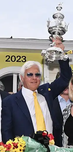 Robert A. Baffert (born January 13, 1953) is an American racehorse trainer. He has trained two Triple Crown winners: American Pharoah in 2015 and Justify in 2018. Baffert's horses have won the Kentucky Derby six times, tying the record with Ben A. Jones for wins by a trainer. He holds the trainer record for the Preakness Stakes with eight wins and has won the Belmont Stakes and Kentucky Oaks three times each. He is a four-time winner of the Eclipse Award for Outstanding Trainer. He has also been the subject of significant controversy regarding repeated incidents of his horses failing drug tests.