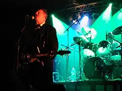 Part 1 were with the early death rock scene and mined a similar vein aesthetically to Rudimentary Peni.[6] The band made their live debut in October 1980 at the Compass Club in Bletchley supporting the local band the Flying Ducks. After their second gig at the Peartree Bridge Centre went badly, they decided to look beyond the confines of Milton Keynes and recorded their first demo at The Crypt, an eight-track studio in Stevenage, in January 1981. Another demo, In the Shadow of the Cross, was recorded in spring that year and garnered attention from the thriving underground network of zines and like-minded individuals including Andy Martin of the Apostles.[7] Part 1 released the Funeral Parade EP in October 1982 on their own Paraworm Records and played their final show in April 1983, supporting the Subhumans at Oxford Street's 100 Club, where Leith split his bass drum skin. He left soon afterwards to join the London band the Snails.[8] When Part 1 began to play live again in the 2010s over twenty years later, Chris Low replaced Bob Leith behind the drums.[9]