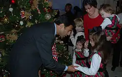 Governor Jindal greets children of deployed Louisiana National Guard Soldiers at the lighting of the State Capitol Christmas tree.