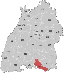 Bodensee is an electoral constituency (German: Wahlkreis) represented in the Bundestag. It elects one member via first-past-the-post voting. Under the current constituency numbering system, it is designated as constituency 293. It is located in southeastern Baden-Württemberg, comprising the Bodenseekreis district and southern parts of the Sigmaringen district.[1]
