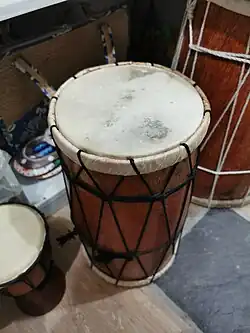 The bodu beru is a Maldivian drum, made of wood from coconut tree trunk, and often grouped in trios.[1] The instrument is used to accompany a dance of the same name, the Boduberu.[2]