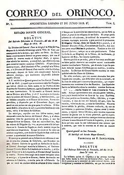 Bolívar took the forces he brought from Haiti to the Orinoco region, which was mostly controlled by Piar. Piar was making headway against the royalists of Angostura, and was preparing to lay siege to the city. The siege proved difficult and long, since Angostura had a lifeline in the river itself. Bolívar's reinforcements were useful and the city fell in August 1817.[4] Angostura proved to be an immensely valuable base. From it the republicans had access to foreign trade in Caribbean and beyond via the Orinoco. The river's tributaries also provided access to the Venezuelan and New Granadan Llanos to the west, especially those in Casanare, where refugees from Morillo's troops had organized themselves under Francisco de Paula Santander. In Angostura Bolívar began publishing the Correo del Orinoco newspaper, an official organ of the revolutionaries, which was circulated not only in Venezuela, but in the Caribbean and in Europe. Under Páez and Piar, the republican armies had begun to recruit the local llaneros who, after Morillo disbanded Boves's informal units, no longer had an outlet for quick enrichment and social advancement under the royalist banner. This, however, posed the challenge to the Criollo republican leaders of channeling the llanero's energy, while not re-igniting the race war that had occurred under Boves. In this environment leaders like Piar, who in recent years had begun to emphasize his Pardo roots as he built a Pardo and llanero following, became suspect, and this weakness proved useful to Bolívar, when the moment came to reassert his position as head of the nascent republic.
