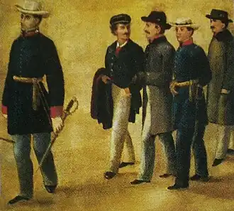 Soublette, Pedro Briceño Méndez, Francisco Antonio Zea, Gregor MacGregor and Brión in Ocumare. 19th century illustration by Carmelo Fernández.