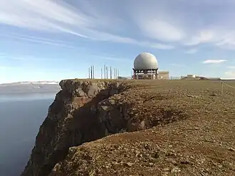 Bolafjall is home to one of the four radar sites of the Iceland Air Defence System. It was previously run by the Icelandic Radar Instituteon on behalf of the Icelandic Defence Force and NATO[1] but is run by the Icelandic Coast Guard today. The radar station at Bolafjall began operation on January 18, 1992, but its operation is now under the care of the Coast Guard. There is a steep road up to Bolafjall. The road has been open to cars in July and August. On top of Bolafjall is a smooth, barren plateau and there is a view to all directions.