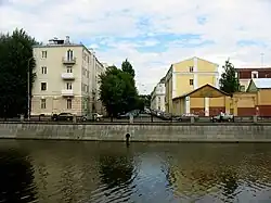 Lower Yauza river had numerous bridges, dams and water mills since Middle Ages. The 1853 city plan shows a total of four such crossings. One was eventually demolished without replacement, three others correspond (west to east) to present-day Maly Ustinsky, Astakhovsky (Yauzsky) and Tessinsky bridges. Most important of these, Yauzsky Bridge, connecting city center with eastbound roads, was rebuilt in stone in 1804. In 1812, it was in the path of retreating Russian Army when it evacuated Moscow after Battle of Borodino.[4] Yauzsky Bridge was renamed Astakhovsky after I.T.Astakhov, a steelworkers' leader killed on the bridge during a rally on February 28, 1917; this title remains official to date.[5]