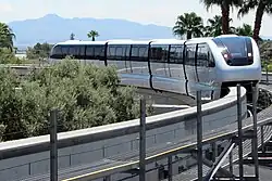 The Mark VI monorail (Mk6) is a monorail train used in the Walt Disney World Monorail System and the Las Vegas Monorail. The Mark VI started replacing the Mark IV monorails at Walt Disney World in 1989, replacing the final Mark IV by 1991.[1] The Mark VI later replaced the two ex-WDW Mark IV monorail sets of the Las Vegas Monorail (then named the MGM Grand-Bally's Monorail) in 2004. The Las Vegas M-VI versions of the trains differ from the Walt Disney World trains in physical appearance and the fact that they are automated, a trait the Walt Disney World monorails lacked until their automation starting in 2014.