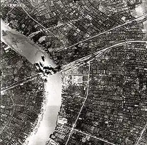 Allied bombing raids on the Thai capital city of Bangkok began even before Thailand had declared war, since the Empire of Japan was using the country as a staging area for its invasions of both Malaya and Burma, with the reluctant agreement of the Thai government after Japan's successful invasion of the southeast Asian country on 8 December 1941. The first raid came on 7 January 1942, when Royal Air Force (RAF) aircraft flying from Rangoon, attacked military targets in the city.[1][2] The American Volunteer Group, together with seven No. 113 Squadron RAF and three No. 45 Squadron RAF Bristol Blenheim bombers, were involved in the first raid.[3] No. 113 Squadron's planes were piloted by No. 60 Squadron's air crew. The second night raid was carried out by eight Blenheims on 24–25 January and included No. 60 Squadron RAF aircrew.[4] A final raid was made three days later by four Blenheims. This was the last raid by Blenheims until May or June 1945. The British and American bombings were also aided by the Free Thai Movement, an Allied-aligned, anti-Japanese guerilla movement. Agents of the Free Thai Movement designated targets for Allied planes and locations of Japanese positions and even reported on the weather over the targets.