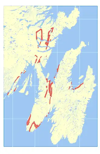 The Bonavista Formation is an Early Cambrian formation which is exposed in outcrop in Newfoundland. The unit is dominated by red mudstone, with some purple-green mudstones, and the occasional interbedded nodular limestone. A gritty conglomerate is exposed at the base of the unit.[2]